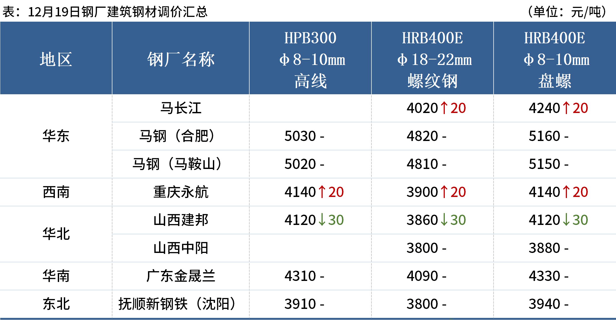 12月19日,全國累計17家鋼廠發(fā)布調(diào)價信息,整體調(diào)幅在0-30元/噸。