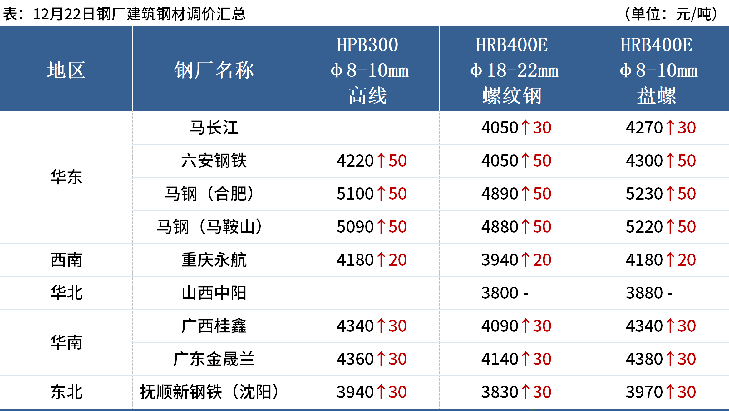 上周五(12月22日),全國累計8家鋼廠發(fā)布調(diào)價信息,整體調(diào)幅在0-50元/噸。