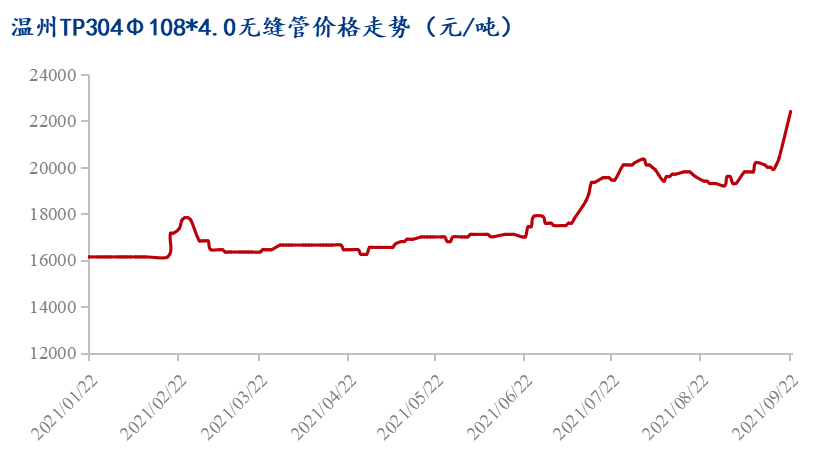 從原料端看,截止發(fā)稿前,青山及德龍圓鋼仍維持封盤狀態(tài)。而22日早間上泰開出新價(jià),304圓鋼漲幅高達(dá)1100元/噸,價(jià)格走至18500元/噸。與此同時(shí)我們上周關(guān)于大廠此次封盤是為調(diào)漲鋪墊的推測(cè)也似乎坐實(shí)。